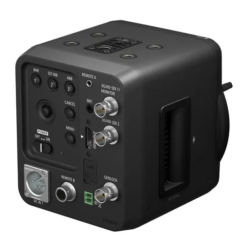 - Salidas: HDMI, 2x 3G/HD-SDI, Genlock, RS-422, mini-jack 2,5 mm (control remoto)